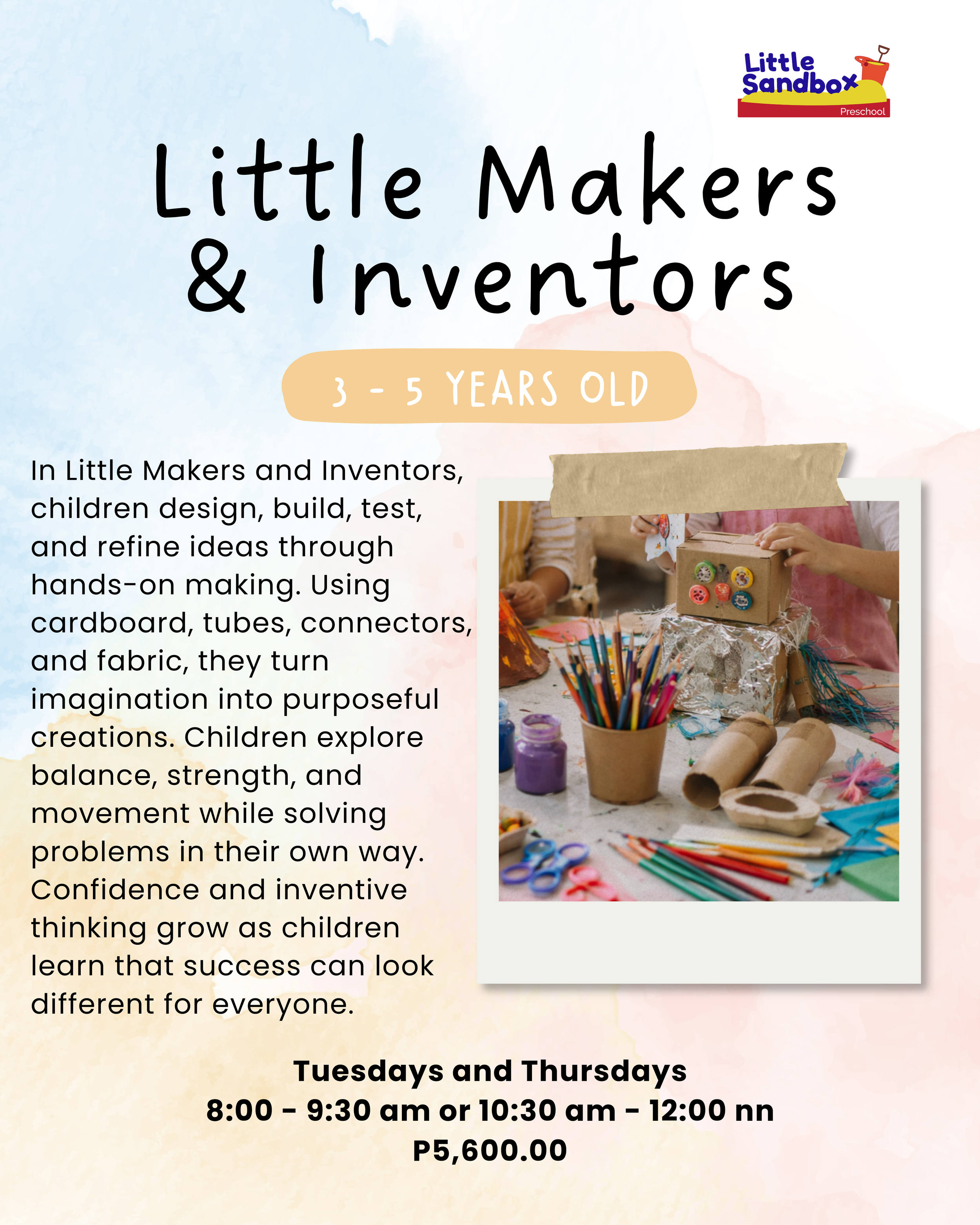 From May 4 to 29, children are invited into studios designed for exploration, creativity, and big ideas. Whether they’re building as inventors, becoming authors and illustrators, diving into messy sensory play, creating in our art atelier, stepping into story worlds, or baking something real and delicious, every class encourages confidence, curiosity, and inventive thinking.